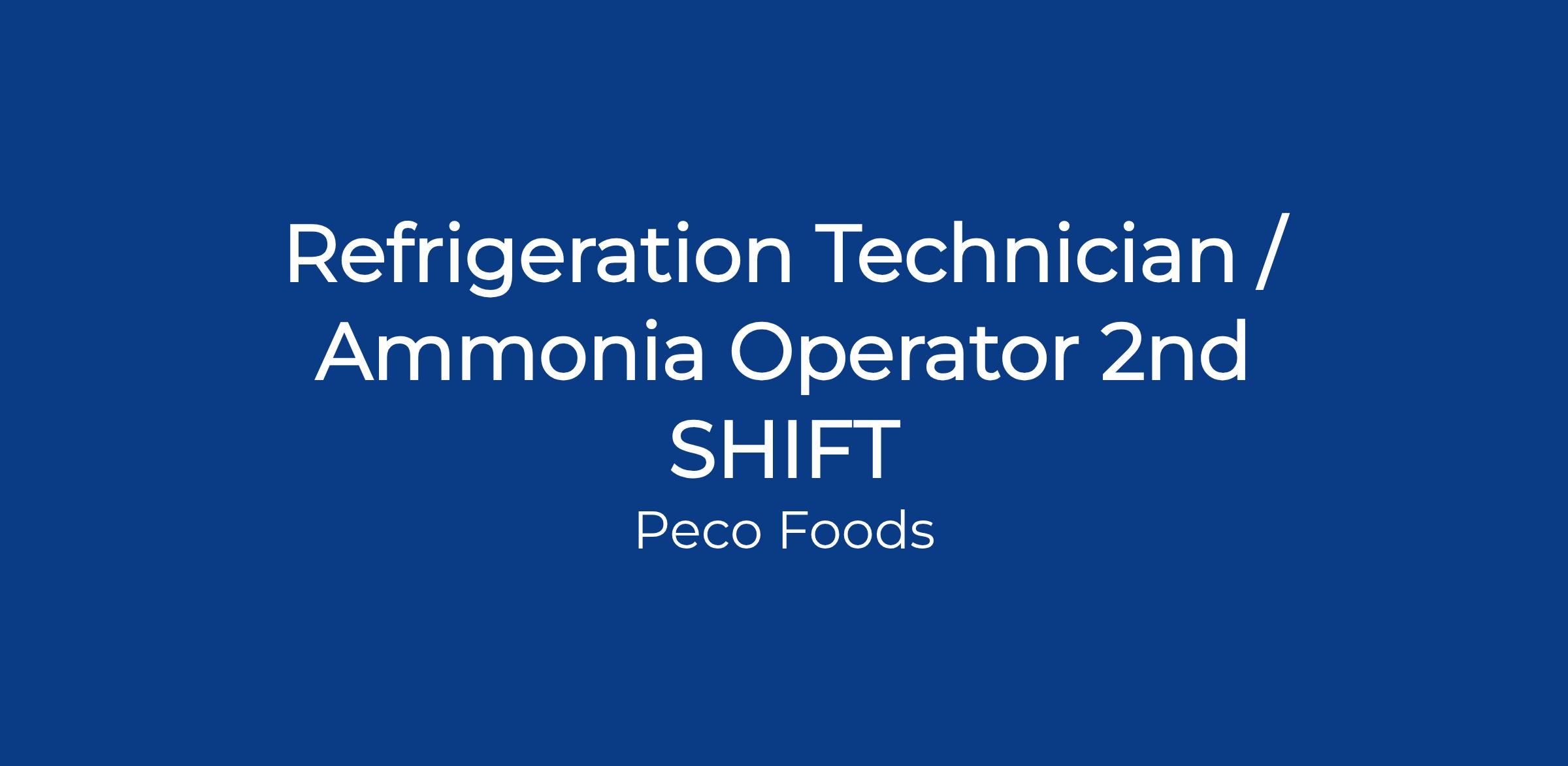 - 2 years of verifiable Ammonia Refrigeration experience preferred.